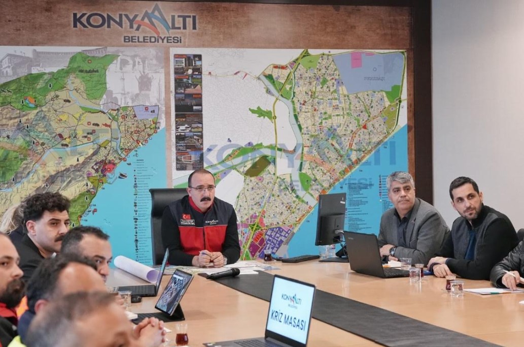Antalya genelinde etkisini gösteren yoğun yağış ve fırtına dolayısıyla oluşturulan Konyaaltı Belediyesi Kriz Masası, Başkan Cem Kotan başkanlığında toplandı. Kotan, “Uzun yıllardır görülmeyen bir sel felaketiyle karşı karşıyayız. Birkaç gündür gece gündüz demeden tüm birimlerimizle sahadayız” dedi.